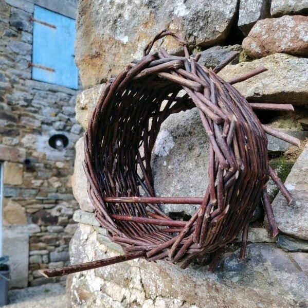 Pièce réalisée : mangeoire à oiseaux en osier (diamètre d’environ 13 cm). Un point de ravitaillement idéal pour observer de ta fenêtre mésanges, pinsons des arbres ou verdiers.